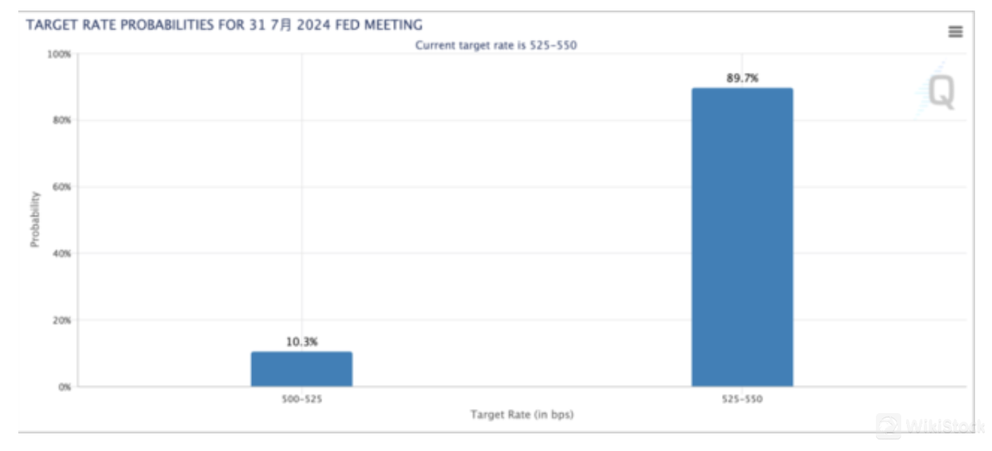 At the June meeting of the Federal Reserve, the Federal Open Market Committee (FOMC) expected to cut interest rates once this year. According to the Fed Watch tool of CME Group, the probability of the Fed cutting interest rates in July is only 10%. It is expected that by September, the probability of the Fed keeping interest rates unchanged is close to 40%. If the latest employment report shows a slowdown in the labor market, investors may increase the possibility of expecting the Fed to cut interest rates.