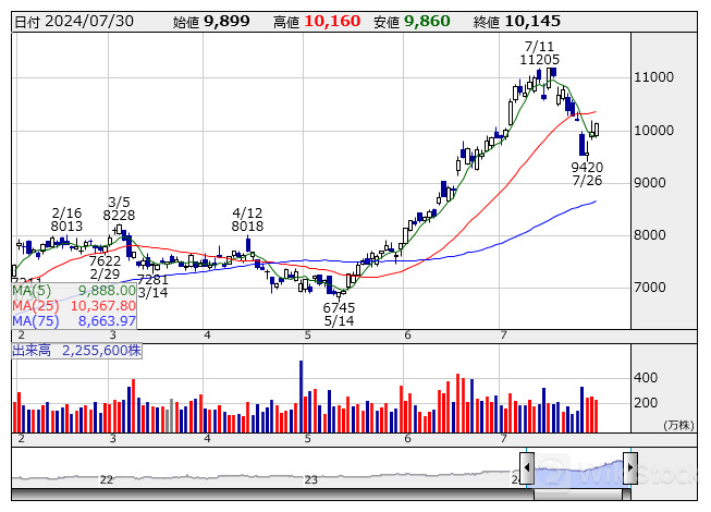 TDK <日足> 「株探」多機能チャートより/>