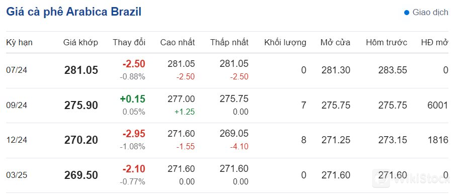 Giá cà phê hôm nay, ngày 17/6/2024: Giá cà phê Arabica Brazil