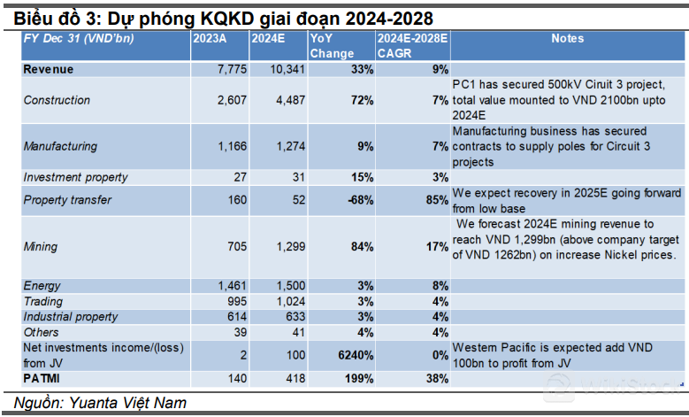 Sự tăng trưởng trong con số dự báo của CTCK này chủ yếu đến từ sự tăng trưởng trong tỷ trọng đóng góp của mảng khai khoáng và bất động sản khu công nghiệp mới của PC1.