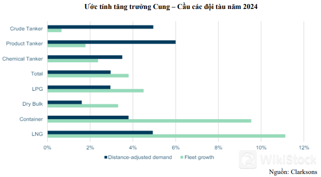 Nhìn vào biểu đồ ở dưới có thể thấy 3 phân khúc là tàu chở dầu, sản phẩm xăng dầu và hóa chất dự kiến có tình hình kinh doanh tốt khi nguồn cung tăng trưởng nhanh trong khi tốc độ phát triển công suất đội tàu chậm lại.