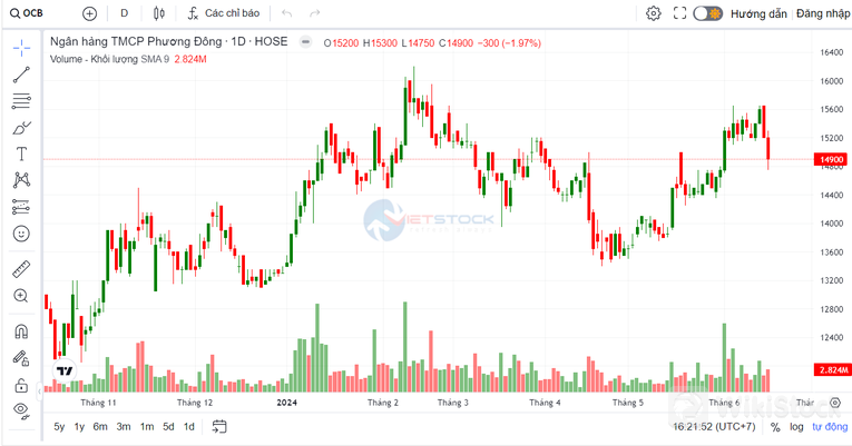 Trên thị trường chứng khoán, chốt phiên giao dịch ngày 17/6, cổ phiếu OCB đóng cửa ở mức 14.900 đồngcổ phiếu, tăng 11% so với hồi đầu năm.