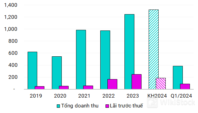 Quý 1/2024, doanh thu của doanh nghiệp vận tải xăng dầu đạt 373 tỷ đồng, tăng đến 75% so với cùng kỳ. Lãi ròng 73 tỷ đồng, cải thiện 25%. Kết quả này đi được 29% chặng đường doanh thu và gần nửa kế hoạch lãi trước thuế.