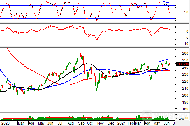 Bên cạnh đó, chỉ báo Stochastic Oscillator duy trì tín hiệu bán sau khi xuất hiện phân kỳ giá xuống (Bearish Divergence) cho thấy dấu hiệu rủi ro trong ngắn hạn. Trong kịch bản kém tích cực hơn, VN-Index có thể quay về test lại đường SMA 50 ngày (tương đương vùng 237-240 điểm) trong các phiên tới.