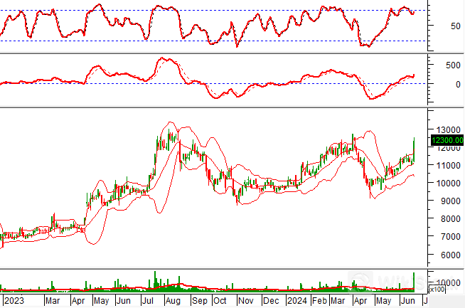 Trong phiên sáng 20/06/2024, NDN bật tăng mạnh đồng thời xuất hiện mẫu hình nến White Marubozu cùng với thanh khoản vượt mức trung bình 20 phiên cho thấy nhà đầu tư đang giao dịch rất sôi động.