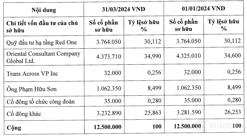 Cơ cấu cổ đông TED tại cuối quý 1/2024![]() |