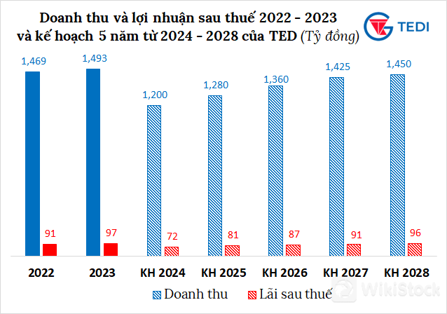 Năm 2024, TED đặt mục tiêu thận trọng với tổng doanh thu 1,200 tỷ đồng và lãi ròng hơn 51 tỷ đồng, giảm lần lượt 20% và 28% so với thực hiện 2023.