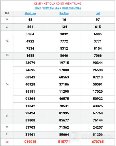 Kết quả xổ số miền Trung (XSMT) được thực hiện lúc 16 giờ 30 phút và được mở thưởng bởi Công ty xổ số kiến thiết của tỉnh Thừa Thiên - Huế (XSTTH), Phú Yên (XSPY). Kết quả của đài nào sẽ được mở thưởng tại trường quay của tỉnh đó. Xổ số hôm nay - KQXSMT ngày 24/6 được quay thưởng bắt đầu từ giải tám cho đến giải nhất, cuối cùng là công bố kết quả giải đặc biệt.