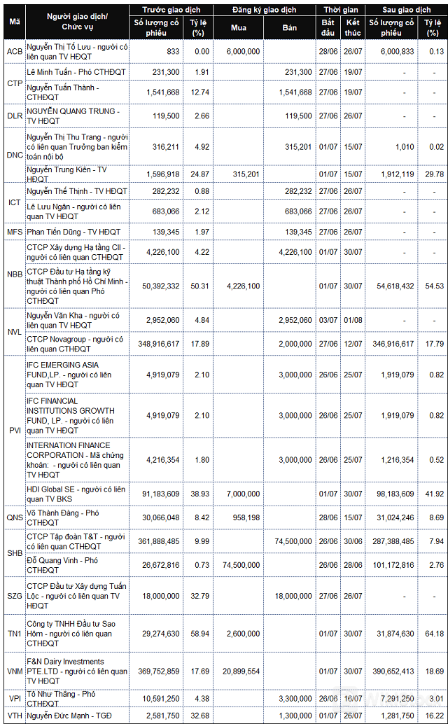 Danh sách lãnh đạo công ty và người thân giao dịch từ ngày 24-28/6/2024![]() |