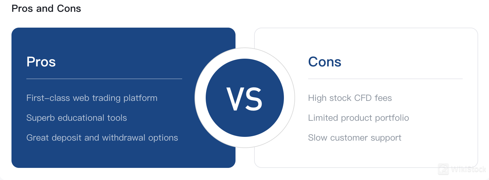 IG Markets的优点是,首先高准入门槛使得新手交易者望而却步,因为入门要求较高。其次,验证程序复杂且不愉快,一些用户因未确认收入或收入过低而遭拒开户。此外,订单执行时存在技术问题,这是根据交易者的反馈所述。IG Markets也没有被动投资产品和奖金制度,同时存款和取款选项有限,对全球外汇交易者来说并不十分方便。网站使用体验不佳,缺乏交易账户信息、实时报价和合同说明,这对于一部分交易者来说可能会感到不便。