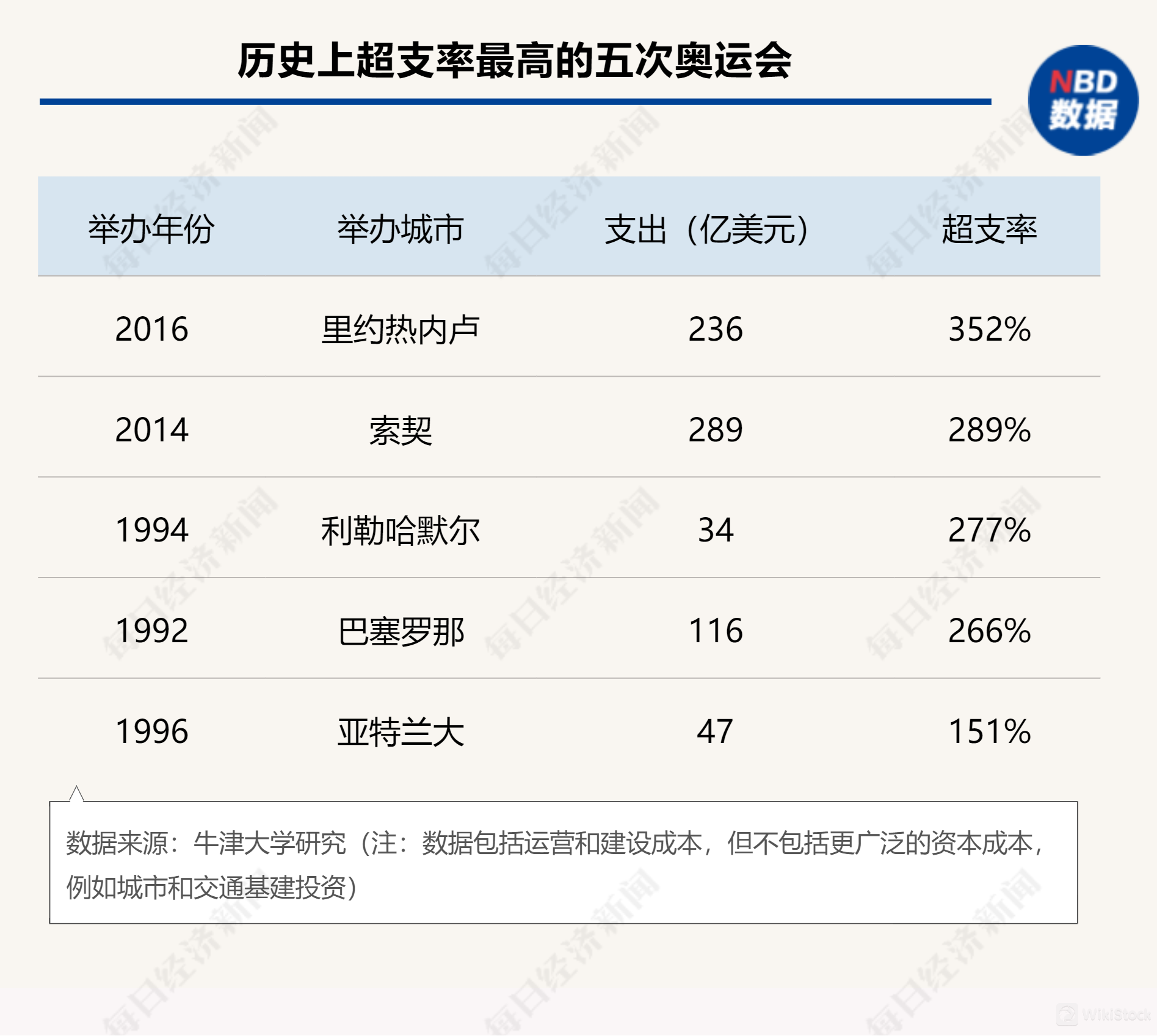 据牛津大学的一项研究,自1960年罗马奥运会以来,历届奥运会最后的开销都大于其最初的预算,平均超支率约为172%。