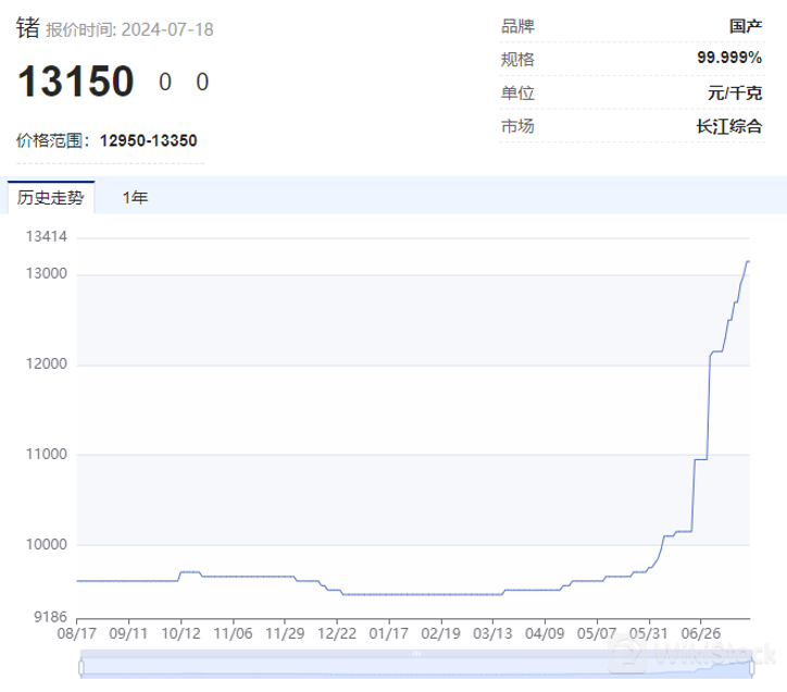 铟年内涨幅超48%
