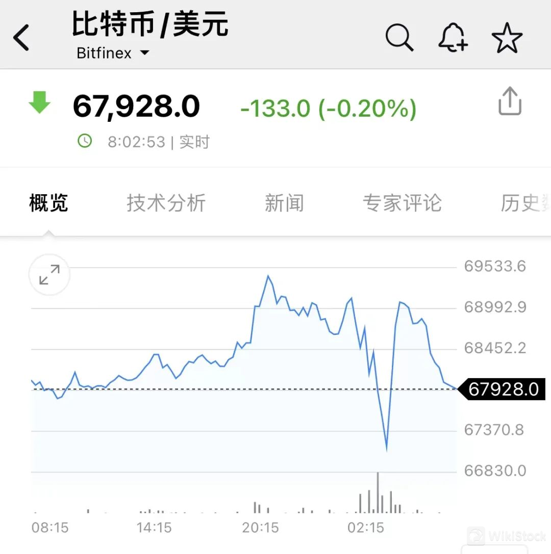在他讲话期间,比特币走出V型行情,先是短线下挫1200美元,跌破6.7万美元关口;到了演讲结尾时,又暴力拉升, 收复了全部跌幅。截至发稿,比特币接近6.8万美元/枚。