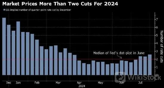 截至发稿,芝商所“美联储观察”工具显示,FOMC预计将分别在9月、11月和12月的会议上进行25个基点降息,多于美联储6月“点阵图”中所预测的两次。