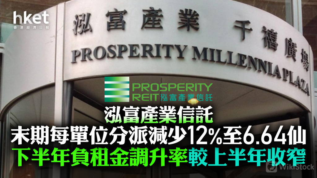 泓富產業信託 (00808)去年可分派收入按年減少12.4%至2.15億元,每基金單位分派減少13.3%至0.1409元,當中末期分派6.64仙,按年減少11.5%,主要受累於加息環境下融資成本上升,導致分派減少。期內集團收益增長0.8%至4.37億元,物業收入淨額略減0.4%至3.36億元。泓富產業信託升1.6%,早段高見1.25元。